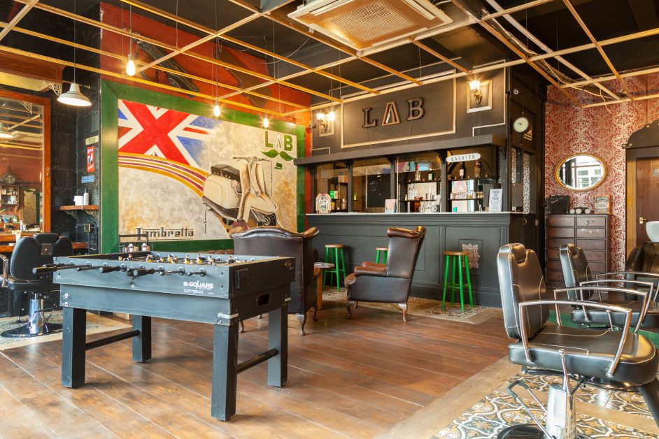1 100% maschileCi dirigiamo verso LAB Gentlemen, un barbiere londinese super cool dove ci aspetta Raffaele, la persona che lo gestisce. E’ il posto perfetto per l’uomo che ama prendersi cura di sé, per il vero “gentlemen” per eccellenza. Nell’aria si respira odore di cuoio, talco, sapone e muschio e si nota subito l’arredamento particolare. In sottofondo si sente musica blues. Meglio di un pub ma con la stessa atmosfera rilassante che ti mette subito di buon umore.