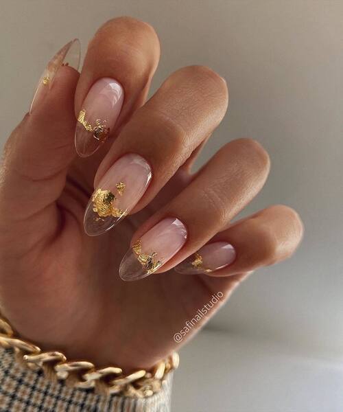 4 Unghie Ferrero RocherCosa ne pensi di queste unghie in stile Ferrero Rocher? OK, non saranno commestibili ma hanno un aspetto così delizioso. I luccichii della foglia d’oro rendono preziosa qualsiasi manicure. Ideale per un look super chic.
